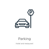 kontur ikona wektor parkowania. na białym tle prosty element linii ilustracja z koncepcji elementów miejskich. edytowalny wektor udar ikona parkowania na białym tle