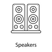 ikonę wektora konturu głośników. na białym tle prosty element linii ilustracji z koncepcji urządzeń elektronicznych. edytowalne wektorowe pociągnięcia ikony głośników na białym tle