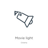 światło kinowe z ikoną wektora przewodu. na białym tle prosty element linii ilustracji z koncepcji technologii. edytowalny wektor skok kinowy z ikoną przewodu na białym tle