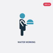 Konspekt kelnera serwujący napój na ikonie wektorowej zasobnika. na białym tle prosty element linii ilustracji od ludzi koncepcji. edytowalny wektor skoku kelnera serwujący napój na ikonie na białym pasku