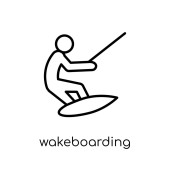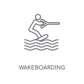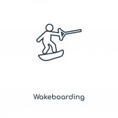 kontur wakeboarding ikona wektora. na białym tle Prosta ilustracja element linii z wolnego czasu koncepcji. edytowalny wektor skok wakeboarding ikona na białym tle