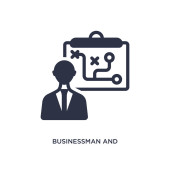 zarys biznesmen i ikona wektor taktyki. na białym tle prosty element linii ilustracji z koncepcji produktywności. edytowalny wektor skok biznesmen i ikona taktyki na białym tle