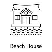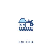 kontur ikona wektor Dom na plaży. na białym tle prosty element linii ilustracji z wakacji koncepcji. ikona Dom Plaża edytowalny skok wektor na białym tle