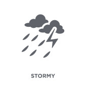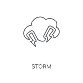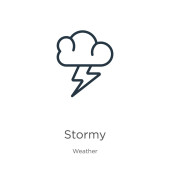 kontur ikona wektora burzowego. na białym tle Prosta ilustracja elementu linii z koncepcji pogody. nieedytowalny wektor skok ikona na białym tle