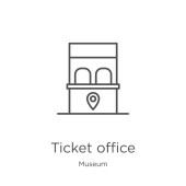 ikona wektor biura biletowych. na białym tle Prosta ilustracja z koncepcji kina. Biuro bilet skok wektor ikona na białym tle