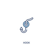 zarysu ryb i ikonę wektora haka. na białym tle prosty element linii ilustracja z koncepcji lato. edytowalne wektor pociągnięcia ryb i ikonę haka na białym tle