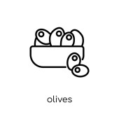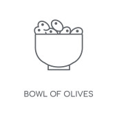 zarys miskę oliwek ikona wektora. na białym tle prosty element linii ilustracji z Bistro i restauracji koncepcji. edytowalna miska wektorowa ikona oliwki na białym tle