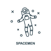zarys człowieka w kosmicznej ikonie wektora. na białym tle prostej ilustracji elementu z koncepcji transportowej. edytowalny wektor skok człowiek w przestrzeni ikona na białym tle