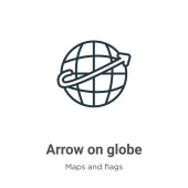 strzałkę konturu na ikonie wektora kuli ziemskiej. na białym tle prosty element linii ilustracji z mapy i flagi koncepcji. edytowalna strzałka pociągnięć wektorowych na ikonie kuli ziemskiej na białym tle