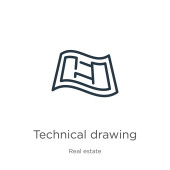 szkic techniczny wektor rysunek ikona. na białym tle prosty element linii ilustracji z koncepcji nieruchomości. edytowalna ikona wektor rysunek techniczne na białym tle