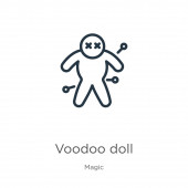 zarys ikony wektor Voodoo. na białym tle prosty element linii ilustracji z magii koncepcji. edytowalny wektor skok Voodoo ikona na białym tle