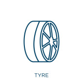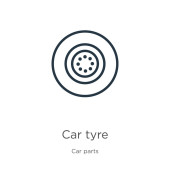 zarys ikony wektora opony samochodowej. na białym tle Prosta ilustracja elementu linii od koncepcji części samochodowych. edytowalny wektor udar ikona opony na białym tle