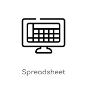 dokument konspektu z ikoną wektora tabel. na białym tle prosty element linii ilustracji z koncepcji interfejsu użytkownika. edytowalny wektor obrysu dokumentu z ikoną tabel na białym tle