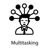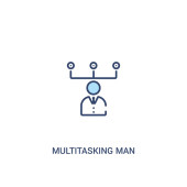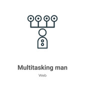 zarys wielozadaniowości człowiek wektor ikona. na białym tle prosty element linii ilustracji z koncepcji internetowej. Wielozadaniowość ikona mężczyzna do edycji wektor na białym tle