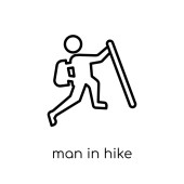 zarys człowieka w ikonę wektor wędrówki. na białym tle proste ilustracja element linii od człowieka koncepcji. edytowalny wektor skok człowiek w ikona wycieczka na białym tle