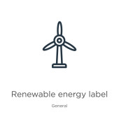 ikona wektorowa etykiety energii odnawialnej. na białym tle prosty element linii ilustracji z ogólnej koncepcji. edytowalne ikona etykieta odnawialne źródła energii wektor na białym tle