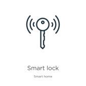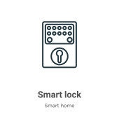 Zdjęcie "ikonę wektorową blokady inteligentnego zarysu. na białym tle prosty element linii ilustracji z inteligentnego domu koncepcji. edytowalne wektor pociągnięcie inteligentny zamek ikona na białym tle" może być wykorzystywane do celów osobistych i komercyjnych zgodnie z warunkami zakupionej licencji Royalty-free. Obraz jest dostępny do pobrania w jakości wysokiej rozdzielczości do 5760x3840.