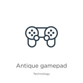 Zdjęcie "zarys rocznika ikony Gamepad wektor. na białym tle prosty element linii ilustracji z koncepcji technologii. ikona na białym tle do edycji wektor udar" może być wykorzystywane do celów osobistych i komercyjnych zgodnie z warunkami zakupionej licencji Royalty-free. Obraz jest dostępny do pobrania w jakości wysokiej rozdzielczości do 5760x3840.