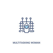 zarys wielozadaniowości kobieta wektor ikona. na białym tle Prosta ilustracja elementu linii z koncepcji biznesowej. ikona kobieta na białym tle do edycji wektor udar