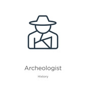 Zdjęcie "zarys ikony wektora archeologa. na białym tle prosty element linii ilustracji z koncepcji historii. edytowalny wektor ikona archeolog skok na białym tle" może być wykorzystywane do celów osobistych i komercyjnych zgodnie z warunkami zakupionej licencji Royalty-free. Obraz jest dostępny do pobrania w jakości wysokiej rozdzielczości do 5760x3840.