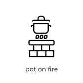 kontur puli na ikonę wektor ognia. na białym tle prosty element linii ilustracji z kempingu koncepcji. edytowalny wektor skok pot na ikonie ognia na białym tle