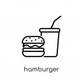 kontur Hamburger i pić wektor ikona. na białym tle prosty element linii ilustracji z koncepcji żywności. edytowalny wektor pociągnięcie Hamburger i pić ikona na białym tle