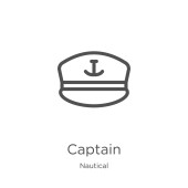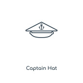 ikona wektor kapitan kapelusz. na białym tle Prosta ilustracja elementu linii z koncepcji żeglarskiej. ikona kapelusz kapitan można edytować wektor na białym tle