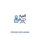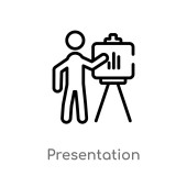 zarys osoby wyjaśniający strategię na pokładzie z ikoną wektora szkicu. na białym tle Prosta ilustracja elementu linii z koncepcji biznesowej. do edycji wektor pociągnięcie osoba wyjaśniając strategię na