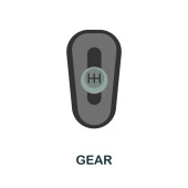 w zarysie koła zębatego steruje ikoną wektora. na białym tle prosty element linii ilustracji od mechanicons koncepcji. edytowalny wektor udar jazdy ikona kontroli biegów na białym tle