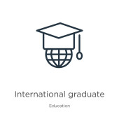 zarys międzynarodowa ikona wektor absolwent. na białym tle prosty element linii ilustracji z koncepcji edukacji. edytowalny wektor udar międzynarodowy absolwent ikona na białym tle