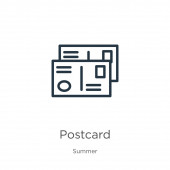 ikonę wektora pocztówki. na białym tle prosty element linii ilustracja z koncepcji lato. edytowalna ikona wektorowa pocztówka na białym tle