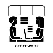 zarys pracy przy ikonie wektora biurowego. na białym tle prosty element linii ilustracji od ludzi koncepcji. edytowalne pociągnięcie wektorowe działające na ikonie biura na białym tle