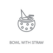 zarys miski z ikoną wektora słomy. na białym tle prosty element linii ilustracji z koncepcji partii. edytowalna miska wektorowa z ikoną słomy na białym tle