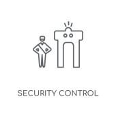 ikonę wektora kontroli bezpieczeństwa. na białym tle Prosta ilustracja element linii z terminala lotniska koncepcji. edytowalny wektor skok ikona kontroli bezpieczeństwa na białym tle