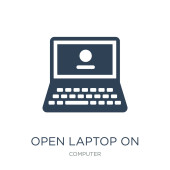 zarys otwartego laptopa na ikonę wektora. na białym tle prosty element linii ilustracji z koncepcji komputera. do edycji wektor udar otwarty laptop na ikonie na białym tle