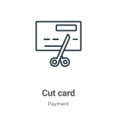 ikona wektorowa karty cięcia konturu. na białym tle prosty element linii ilustracji z koncepcji płatności. edytowalna ikona wektorowej karty cięcia na białym tle