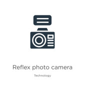 ikona wektorowa odblaskowego aparatu fotograficznego. na białym tle prosty element linii ilustracji z koncepcji technologii. edytowalny wektor Stroke Reflex aparat fotograficzny ikona na białym tle