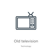 zarys starej ikony wektorowej telewizji. na białym tle prosty element linii ilustracji z koncepcji technologii. edytowalny wektor Stroke stary ikona telewizora na białym tle