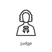 zarys sędzia z ikoną młot wektor. na białym tle prosty element linii ilustracji od ludzi koncepcji. edytowalny wektor udar sędzia z ikoną młotka na białym tle