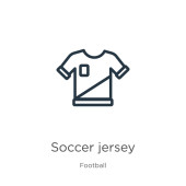 zarys ikony wektorowej koszulki piłkarskiej. na białym tle prosty element linii ilustracji z koncepcji piłki nożnej. ikona Koszulka piłka nożna skok wektor na białym tle