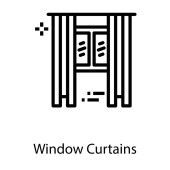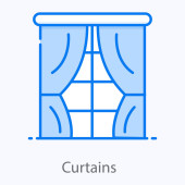 ikonę wektora konturu. na białym tle prosty element linii ilustracji z koncepcji mebli. edytowalna ikona kurtyny wektorowej na białym tle