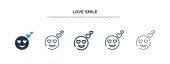 zarys w miłości ikona wektor uśmiech. na białym tle prosty element linii ilustracji z koncepcji interfejsu użytkownika. edytowalny wektor udar w miłość ikona uśmiech na białym tle