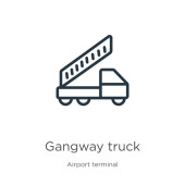 zarys ikony wektora gangu ciężarówki. na białym tle Prosta ilustracja element linii z terminala lotniska koncepcji. ikony ciężarówka edytowalne wektor przejścia na białym tle