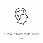zarys mózgu w łyse ikonę wektor głowy. na białym tle prostej ilustracji elementu linii z koncepcji medycznej. edytowalny wektor udar mózgu w łyse ikonę głowy na białym tle
