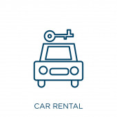 ikona wektorowa wynajmu samochodu. na białym tle prosty element linii ilustracji z koncepcji znaków. edytowalny wektor skok samochod ikona na białym tle