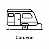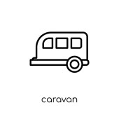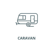 ikona wektor karawany. na białym tle prosty element linii ilustracji z kempingu koncepcji. edytowalne wektor skok karawana ikona na białym tle