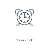 ikonę wektora zegara tabeli konspektu. na białym tle prosty element linii ilustracji z koncepcji mebli. edytowalny wektor ikona zegar tabeli na białym tle