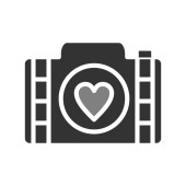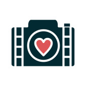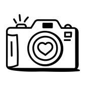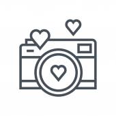 aparatu i ikony wektora obrazu serca. na białym tle prosty element linii ilustracji z koncepcji technologii. edytowalna kamera pociągowa wektorowa i ikona obrazu serca na białym tle