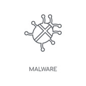 kontur ikona wektor złośliwego oprogramowania. na białym tle Prosta ilustracja elementu linii z koncepcji Cyber. edytowalne wektor udar ikona złośliwego oprogramowania na białym tle