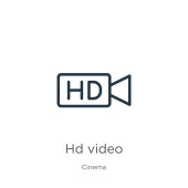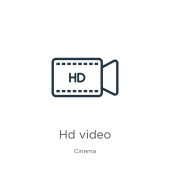 kontur HD wideo wektor ikona. na białym tle Prosta ilustracja z koncepcji kina. edytowalny wektor Stroke HD ikona wideo na białym tle